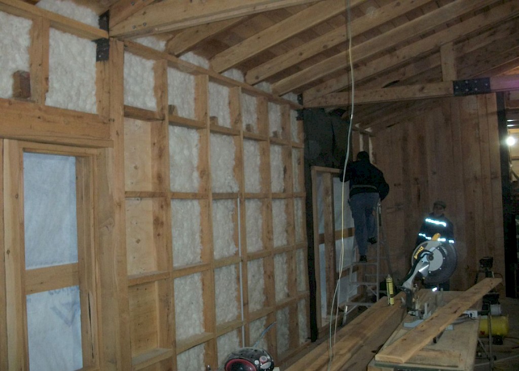 barrera de Tyvek, la aislación hecha en paneles de lana, le sigue una barrera